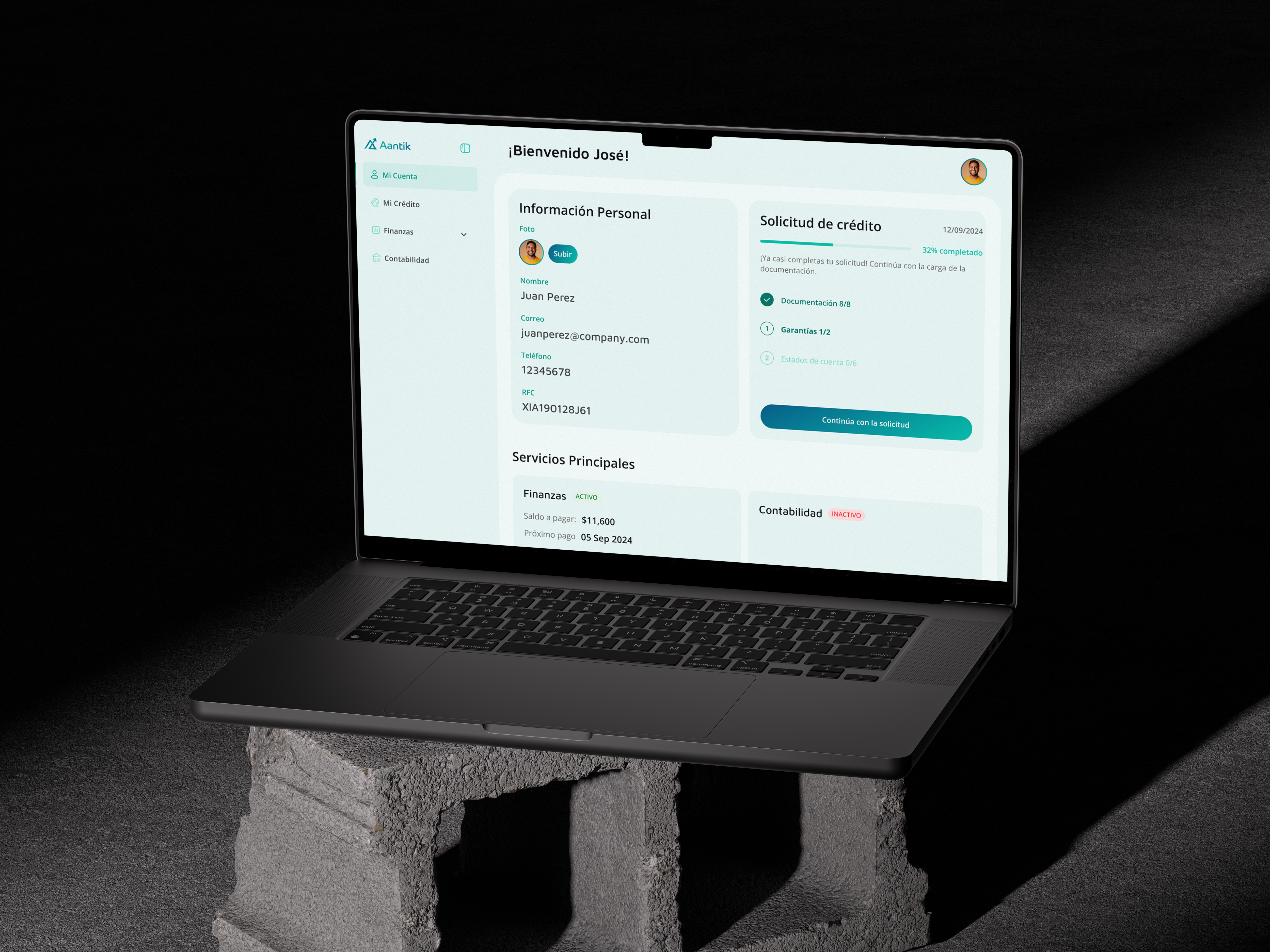 Aantik is a company focused on providing accessible financial solutions for businesses, SMEs, and professionals. The challenge was to redesign their website and rebuild their digital platform, transforming it into an efficient, clear, and visually appealing tool.