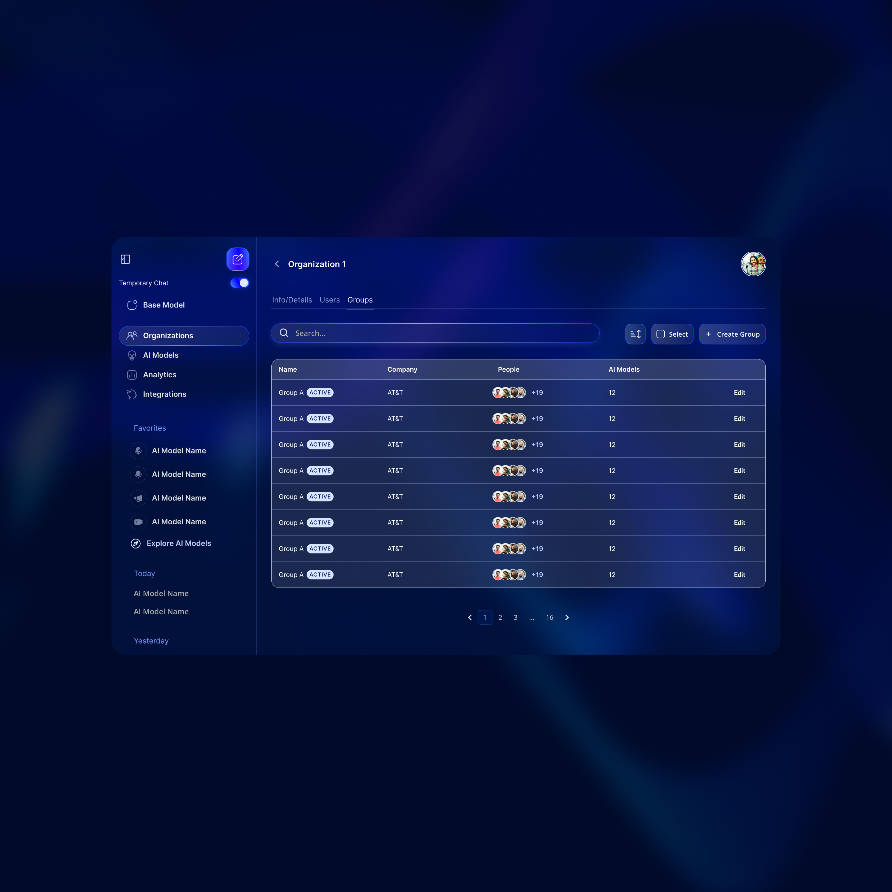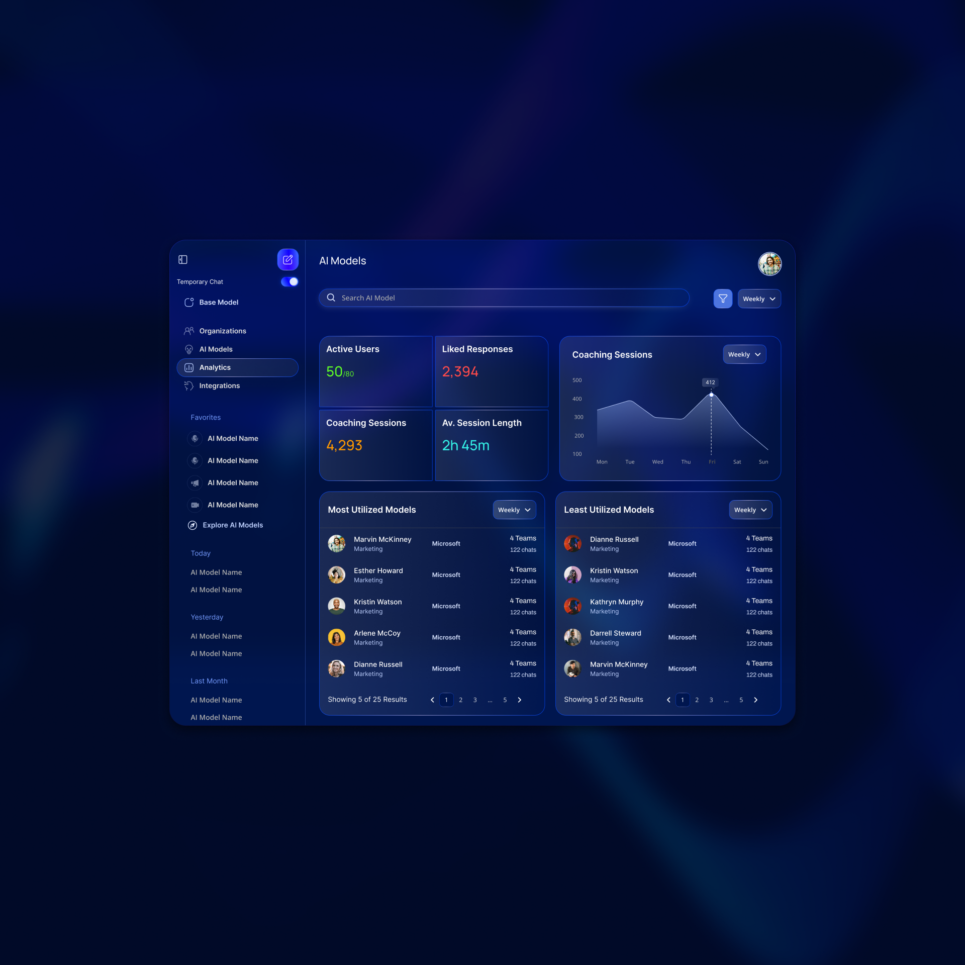 2. Advanced features (model management, analytics, user invitations) without overwhelming the interface.